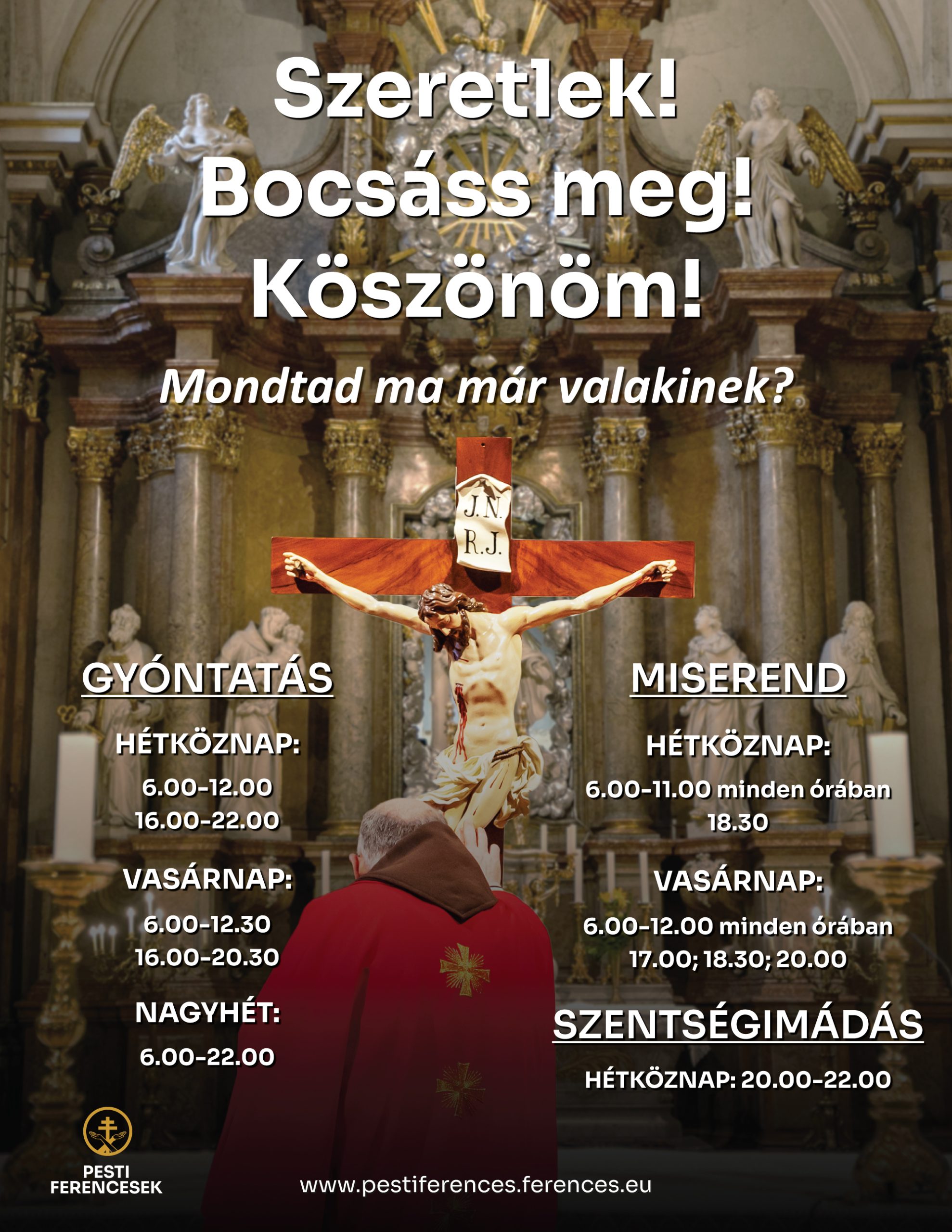 A misézés, gyóntatás heti beosztása elérhető: ITT!