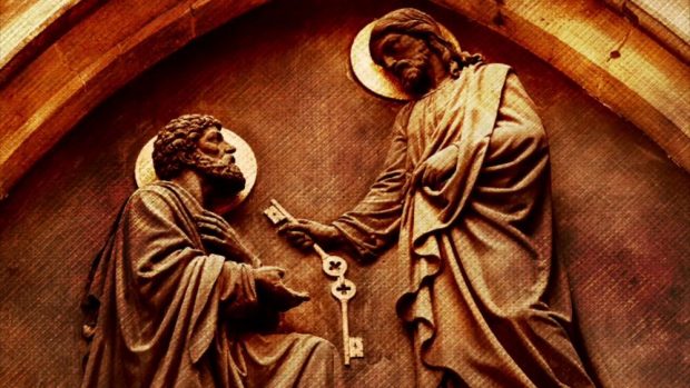 A mai evangéliumi részletben Jézus Pétert nevezte Sziklának. Neki adta a mennyek országa kulcsait, vagyis rá és utódai vezetésére bízta Egyházát, és azt ígérte, hogy a pokol kapui nem vesznek erőt rajta.