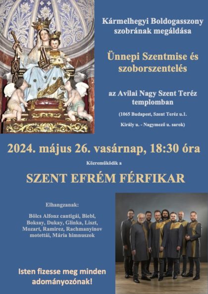 Avilai Nagy Szent Teréz templom – május 26. – Kármelhegyi Boldogasszony szobor avatás