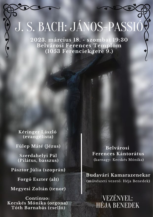 Bach: János passió című műve hangzik fel templomunkban 2023. március 18án, jövő szombaton este fél 8-tól templomunk Kántorátusa és a Budavári Kamarazenekar előadásában. A belépés díjtalan, adományokat a Bethesda Kórház javára gyűjtünk.