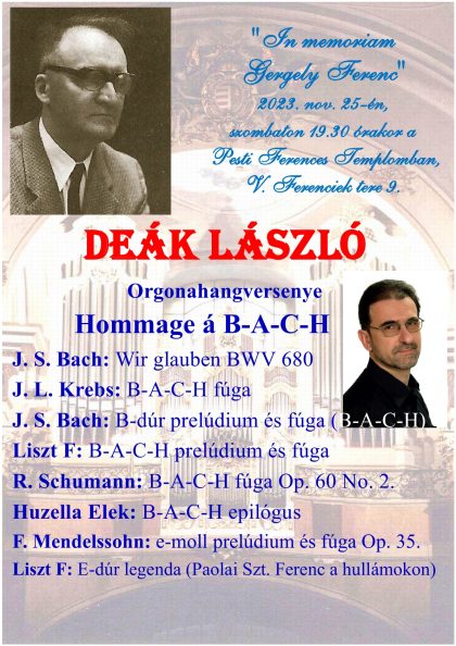 Deák László orgona hangversenye 2023. november 25, szombaton 19.30-kor