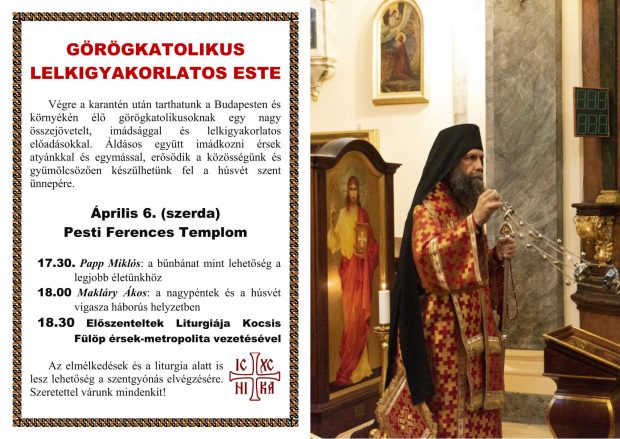 Kocsis Fülöp görögkatolikus érsek-metropolita előszenteltek liturgiáját tart templomunkban 2022. ápr. 6-án, szerda este fél 7-től. Előtte húsvéti elmélkedések segítik a fölkészülésünket.