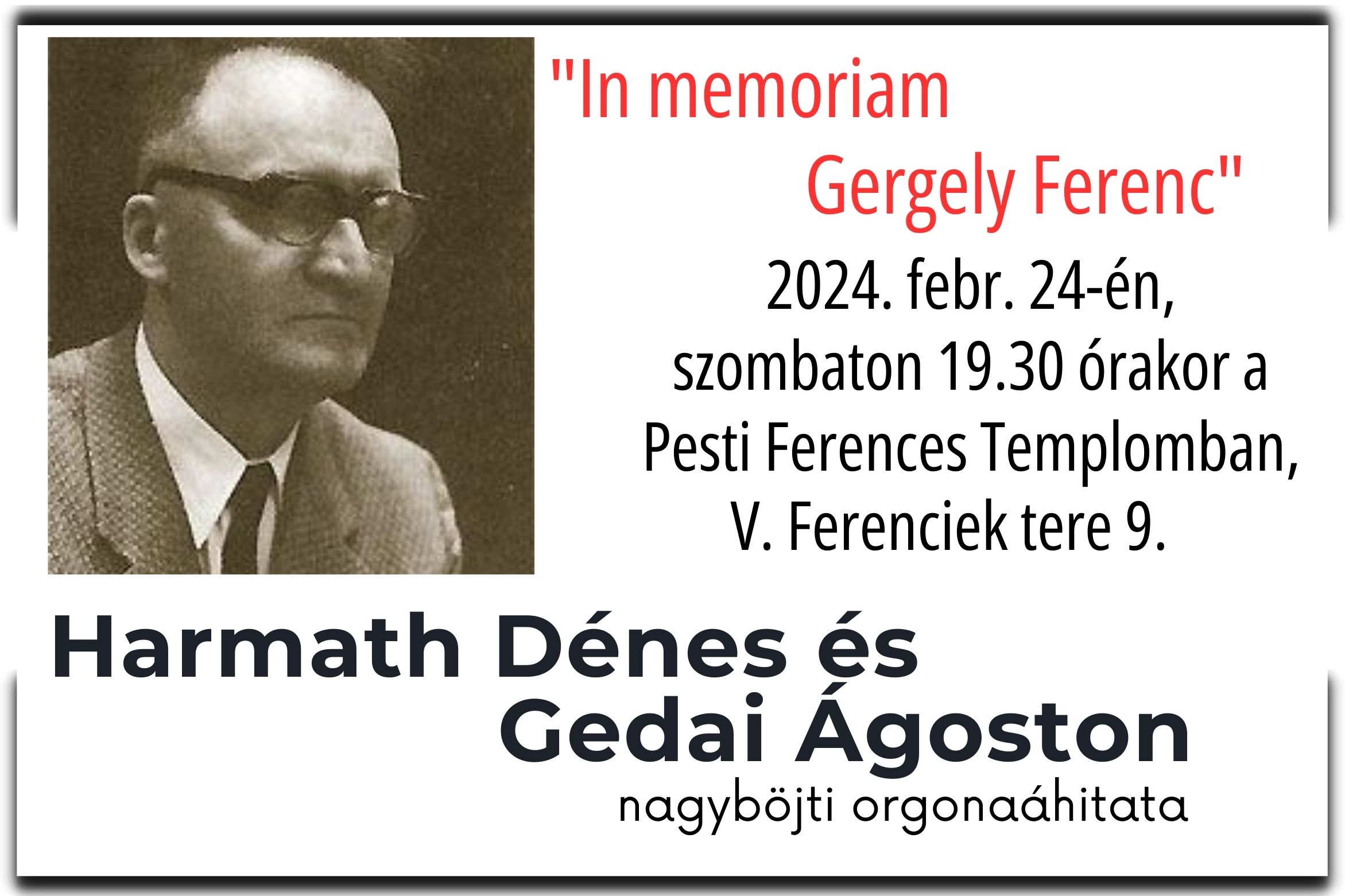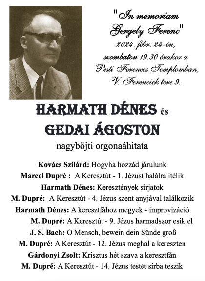 Harmath Dénes és Gedai Ágoston nagyböjti orgonaáhítata február 24-én