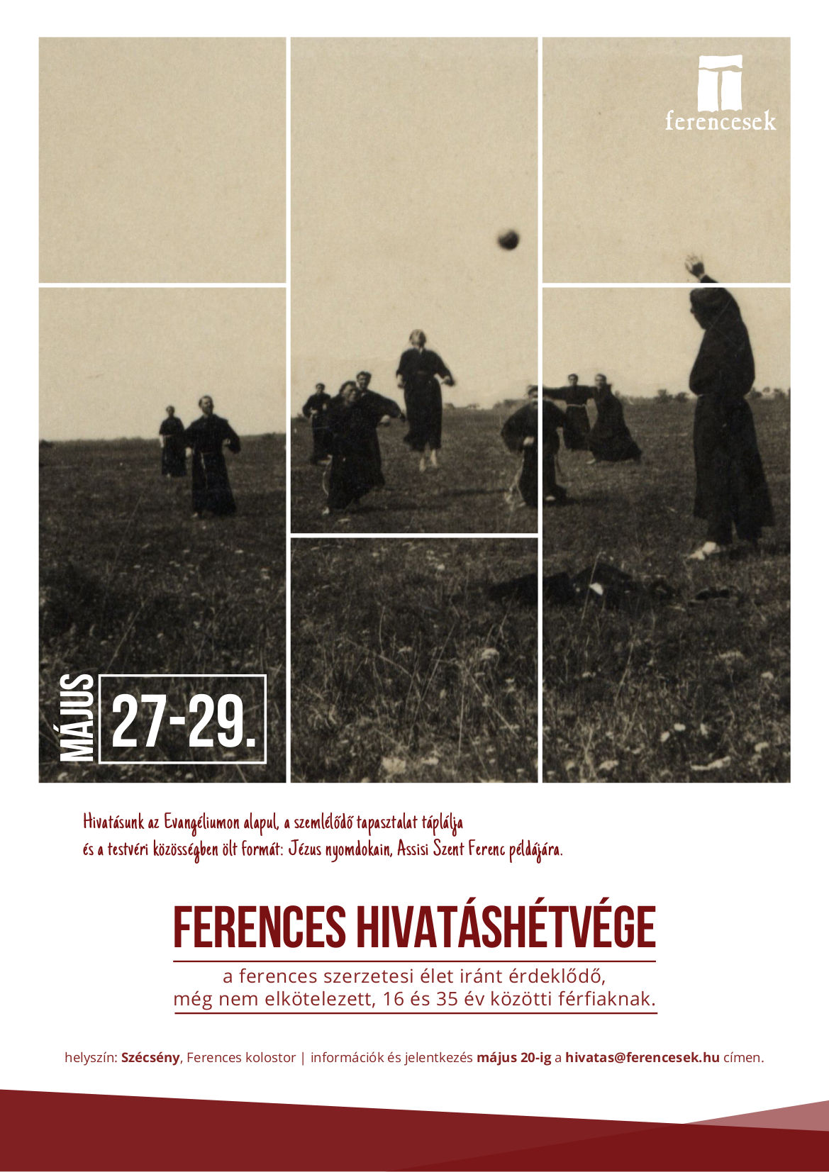 - A ferences szerzetesség iránt érdeklődő 16-35 év közötti férfiak számára „Ferences Hivatáshétvége” lesz Szécsényben május 27-29 között. Jelentkezni május 20-ig lehet a hivatas@ferencesek.hu e-mail címen. További részletek ITT.