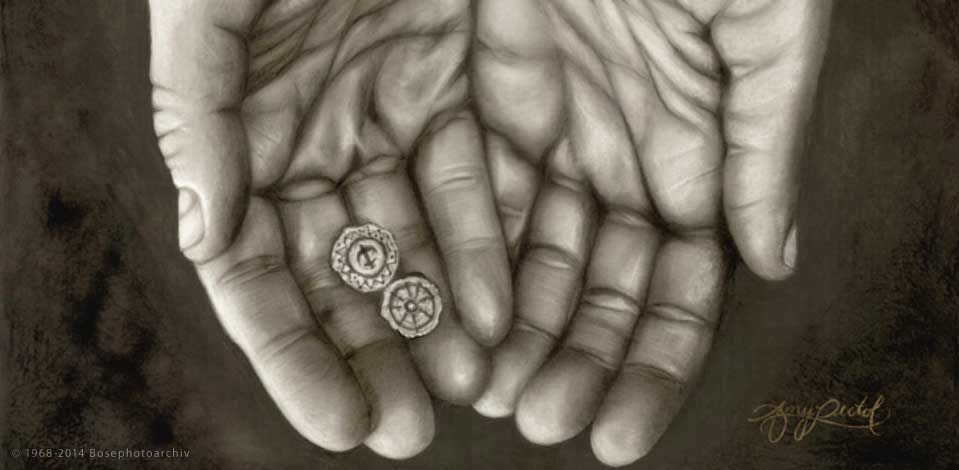 maga is támaszra szorult, mindenét Istennek adta, hiszen az a perselybe dobott két fillér a teljes vagyona volt. Ezzel kifejezte Istenbe vetett feltétlen bizalmát: életét teljesen Isten kezébe helyezte.