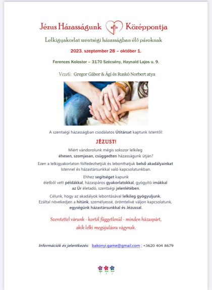 Lelkigyakorlat szentségi házasságban élő pároknak szeptember 28 – október 1 Szécsény