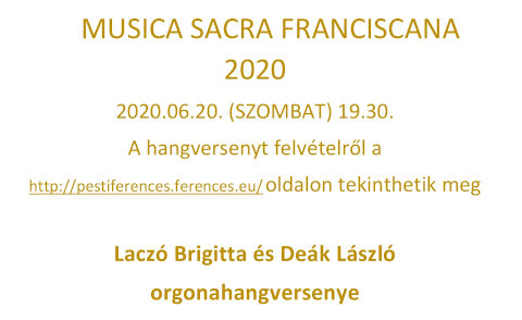 Online hangverseny A Gergely Ferenc emléksorozat első hangverseny 2020. június 20-án lesz. A kialakult helyzetre való tekintettel ezt online formában tesszük közzé felvételről, am... 2020. június 14.