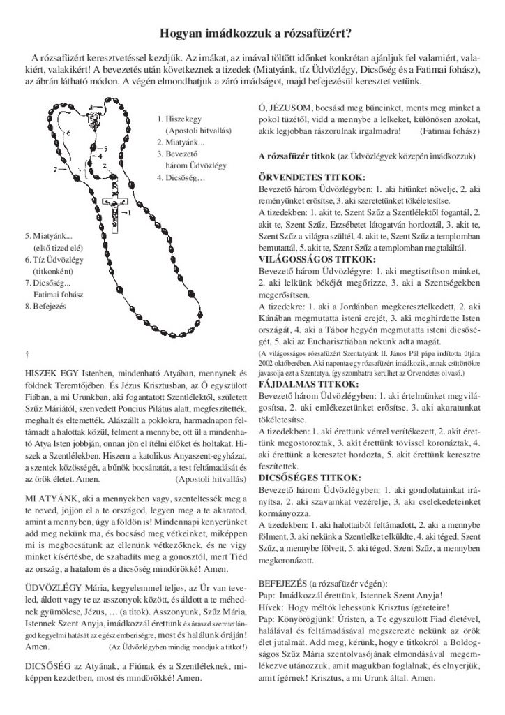 A szentolvasó (rózsafüzér) a katolikus nép kedvelt imádsága, melyet egyénileg és közösségben egyaránt végezhetünk.