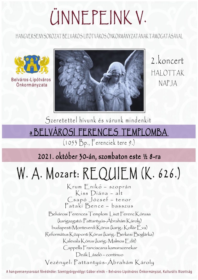 Templomunk Liszt Ferenc Kórusa Mozart Requiem-jét adja elő 2021. okt. 30-án, szombat este fél 8-tól.
