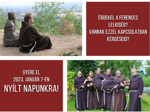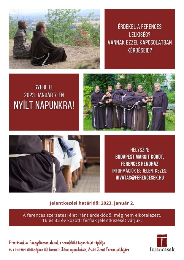 A nyílt nap 2023. január 7-én, szombaton a Margit körúti ferences rendházban lesz (Budapest, Margit körút 23).