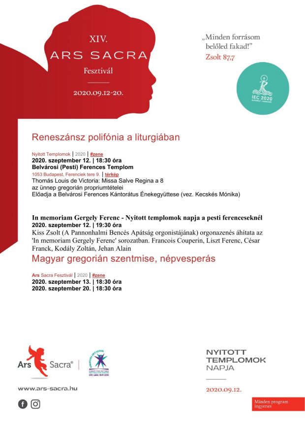 Az Ars Sacra Fesztivál keretében kántorátusunk szeptember 13-án (vasárnap) az esti szentmisén és ezt követően ferences források gregorián tételeiből énekel.
