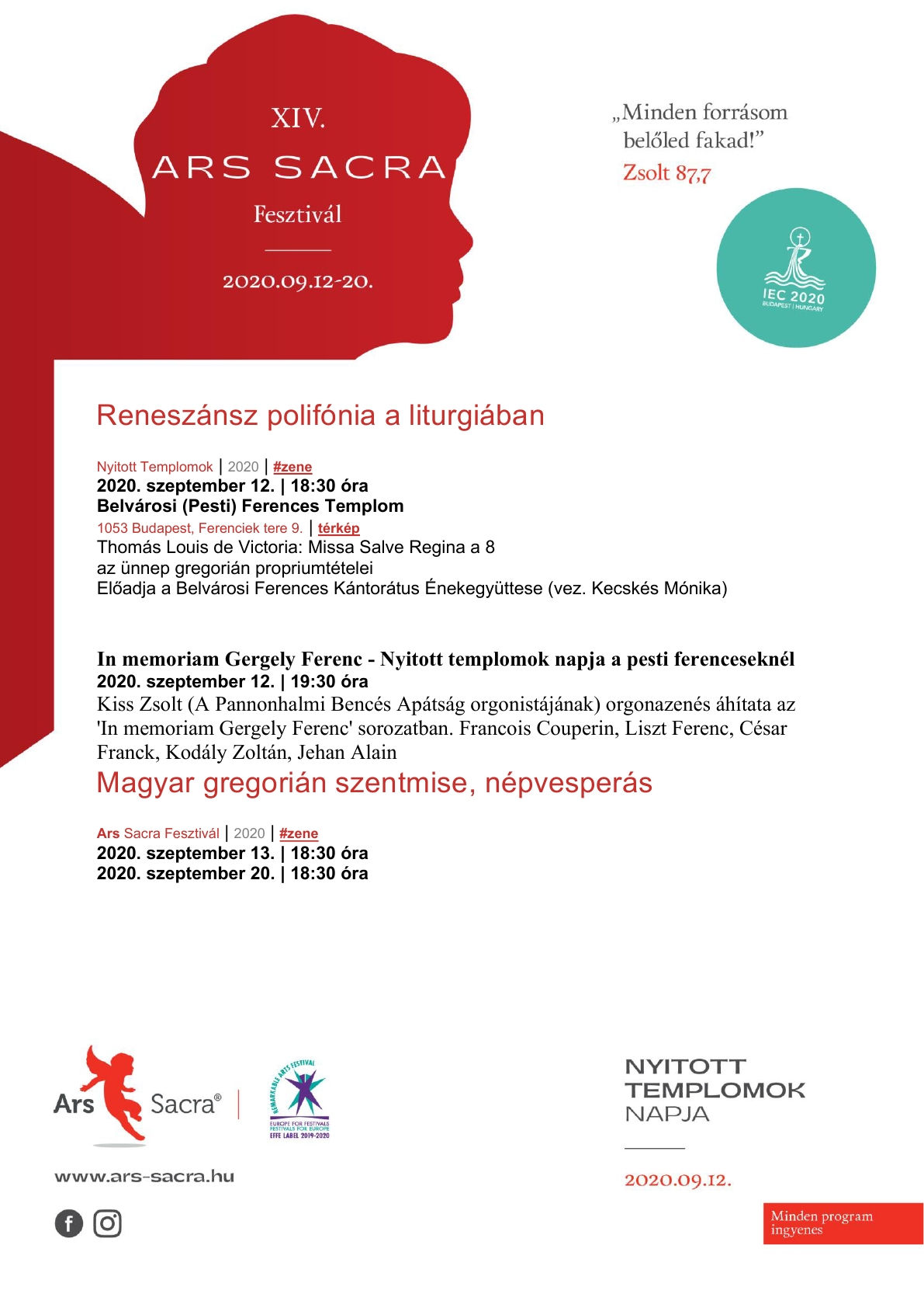 Az Ars Sacra Fesztivál keretében kántorátusunk szeptember 13-án (vasárnap) az esti szentmisén és ezt követően ferences források gregorián tételeiből énekel.