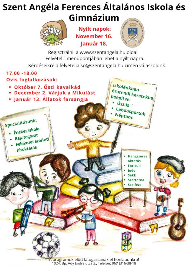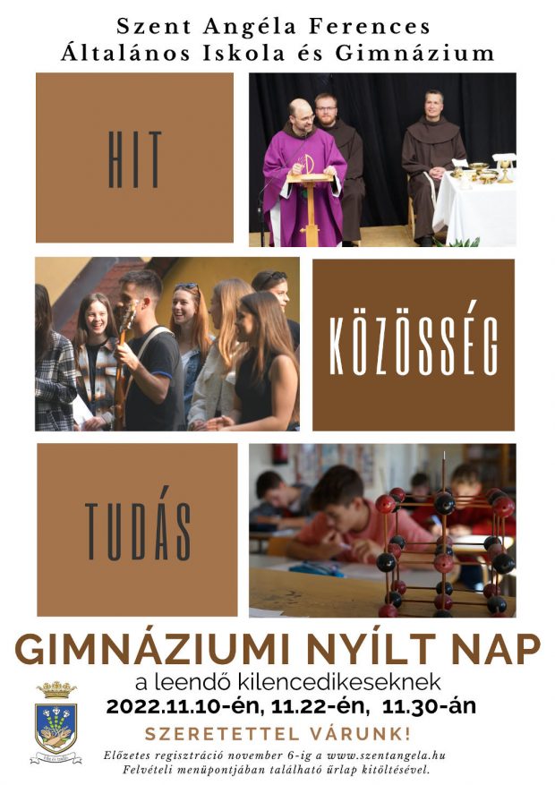 A Szent Angéla Ferences Általános Iskola és Gimnázium szeretettel várja az új diákokat a 2022/23-as tanévre.