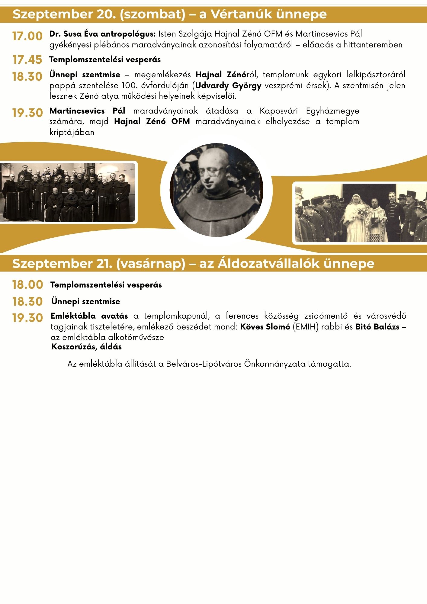 Templomunk felszentelésének évfordulója, Hajnal Zénó OFM maradványainak elhelyezése, emléktábla avatás