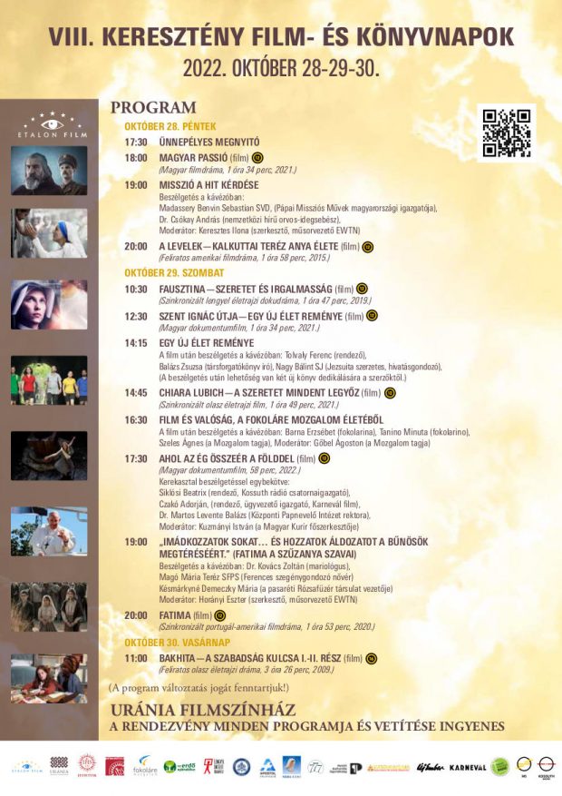 alkalmával felemelő környezetben lesz megtekinthető nyolc keresztény értéket képviselő film, alkalom nyílik érdekes és megérintő kerekasztal beszélgetéseken elmélyíteni a felmerülő kérdéseket, valamint az egyetemes értékű könyvek és DVD filmek várják a kedves érdeklődőket ezen az exkluzív rendezvényen.